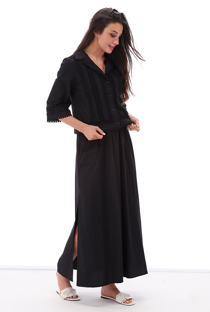 Ervaar tijdloze elegantie met de blouse met kant van K-design. Deze blouse straalt verfijning uit door de prachtige kanten details en de elegante knoopsluiting. Het model is licht getailleerd, waardoor het je figuur op subtiele wijze accentueert. De driekwart mouwen met kant voegen een romantisch vleugje toe, perfect voor zowel formele als informele gelegenheden.