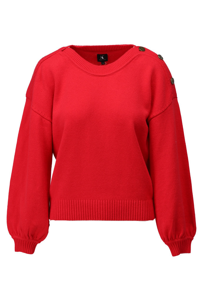 K-design - Pull met ronde hals en knopen (A803Poppy red)