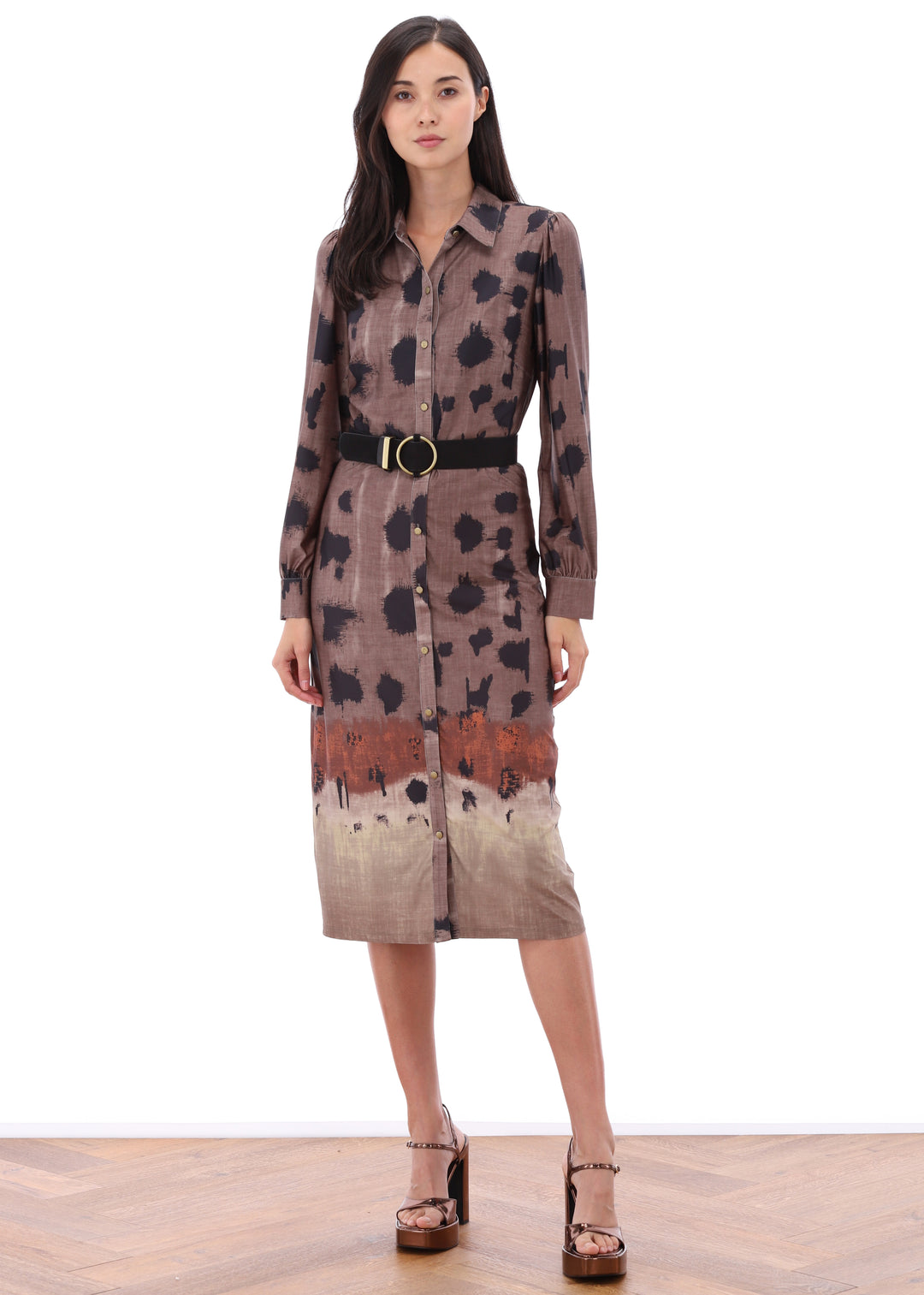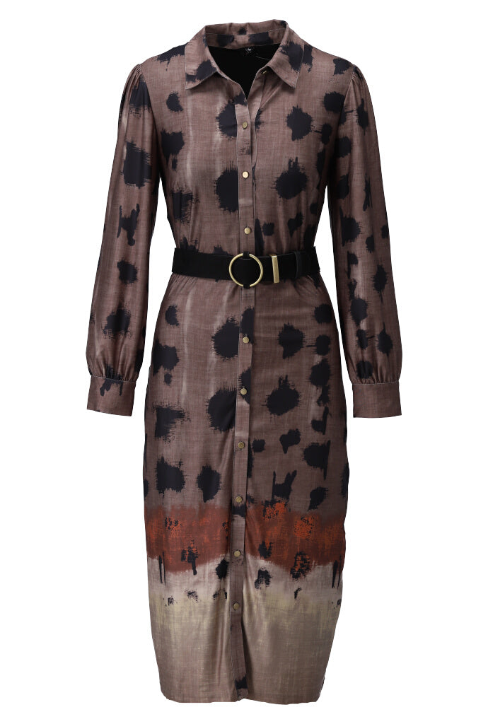 K-design - Midi dress met print, knopen en bijpassende riem