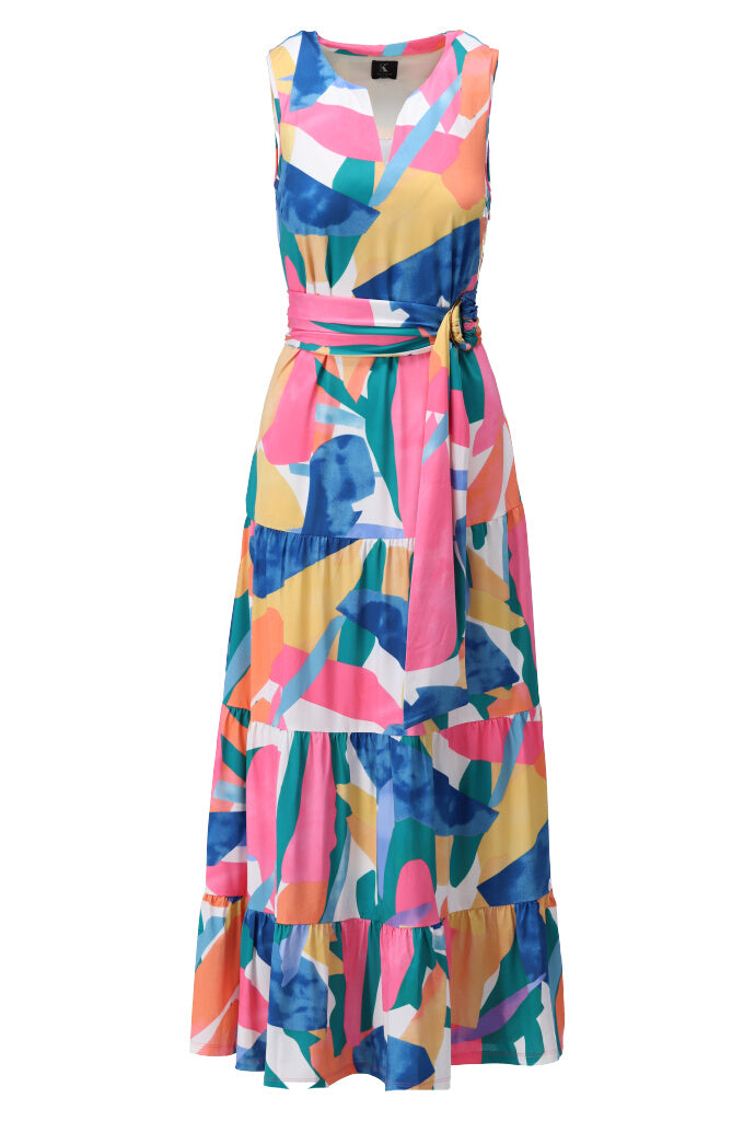 K-design - Mouwloze maxi dress met print en stoffen riem (A251P975)