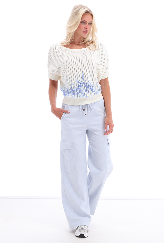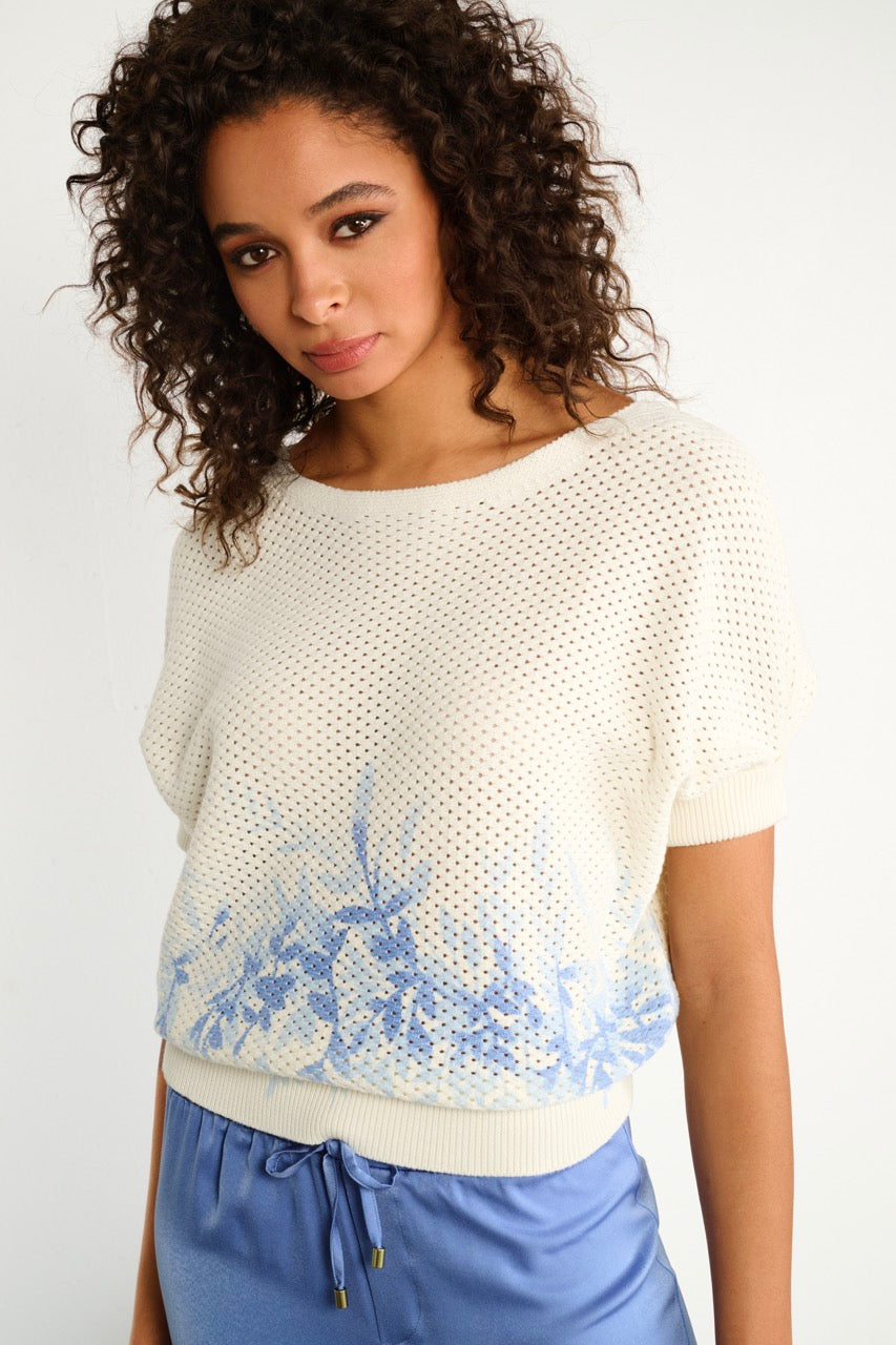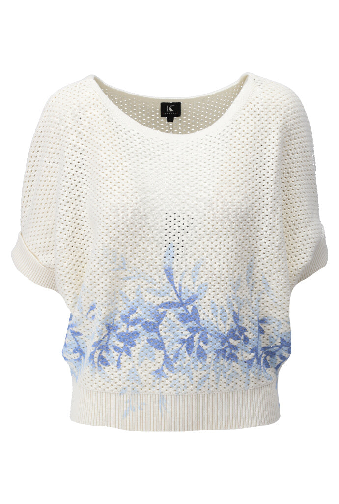 K-design - Pull met vleermuismouwen en blauwe print (A851Ecru)