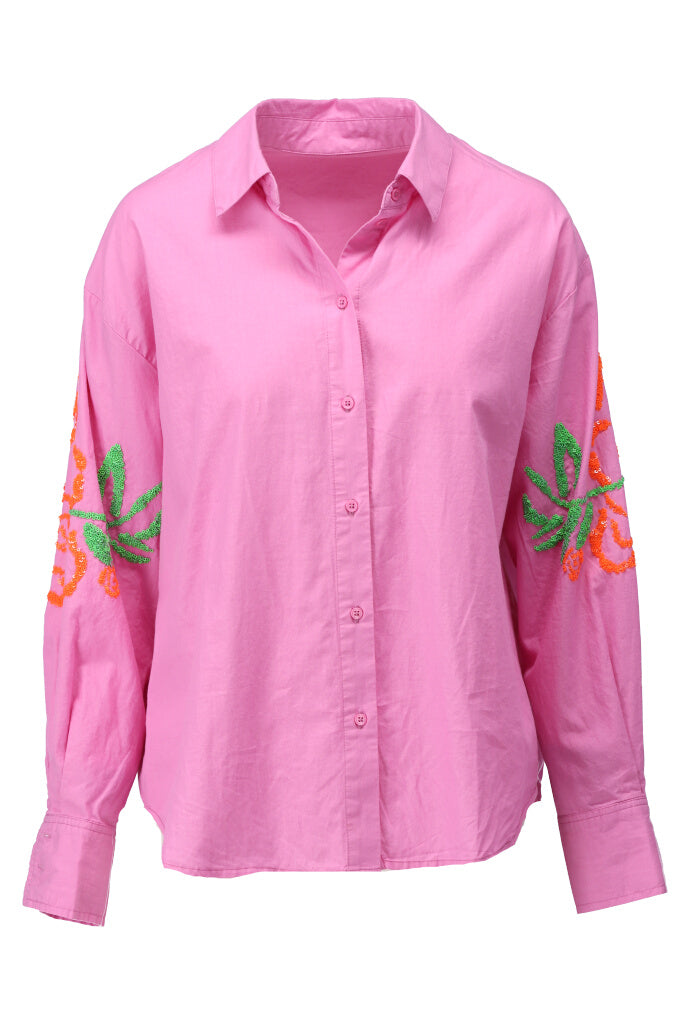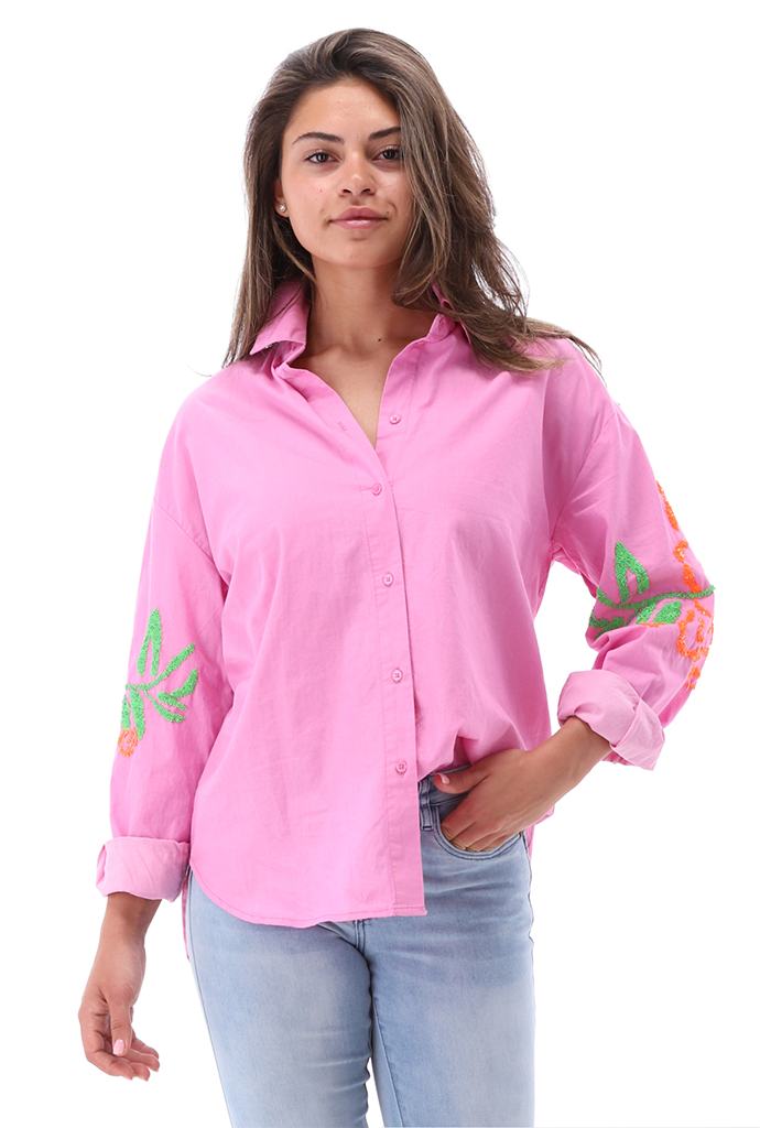 K-design - Oversized blouse met rozen (A750Fuchsia pink)
