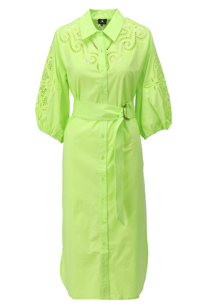 K-design - Maxi dress met borduursel en stoffen riem (A760Sharp green)