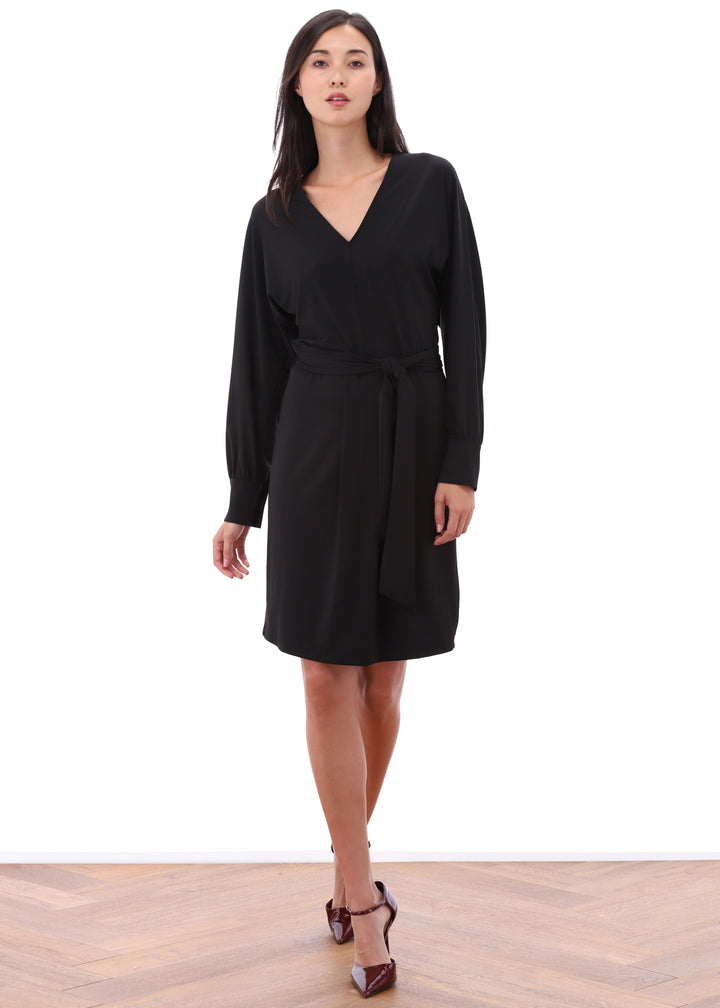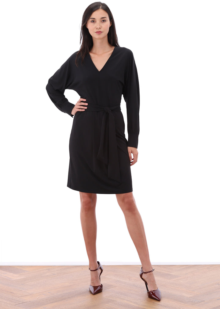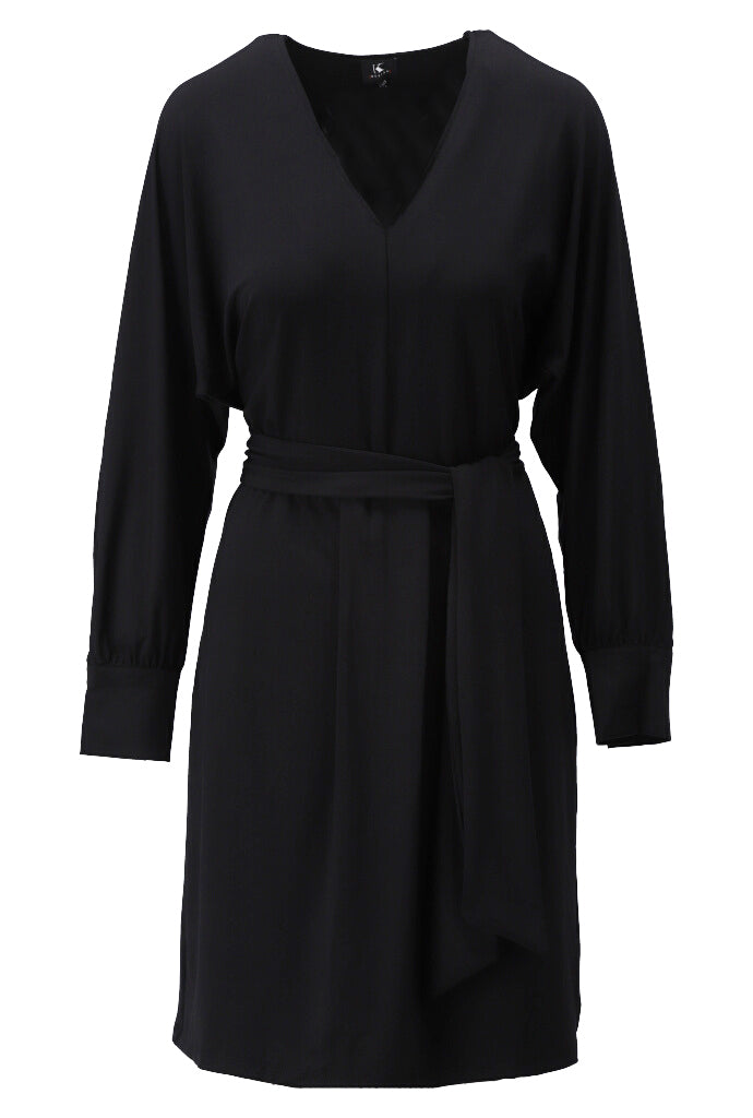 K-design - Effen midi dress met V-hals, plooi en stoffen riem
