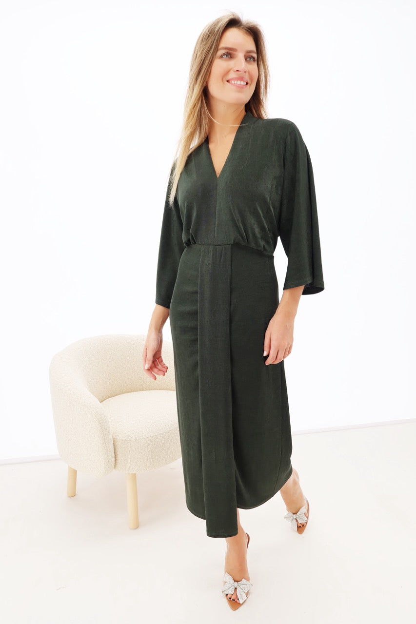 K-design - Midi dress met V-hals en plooi (Y402) - What Els!