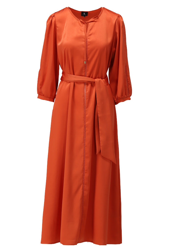 K-design - Satijnen maxi dress met stoffen riem (Y751)