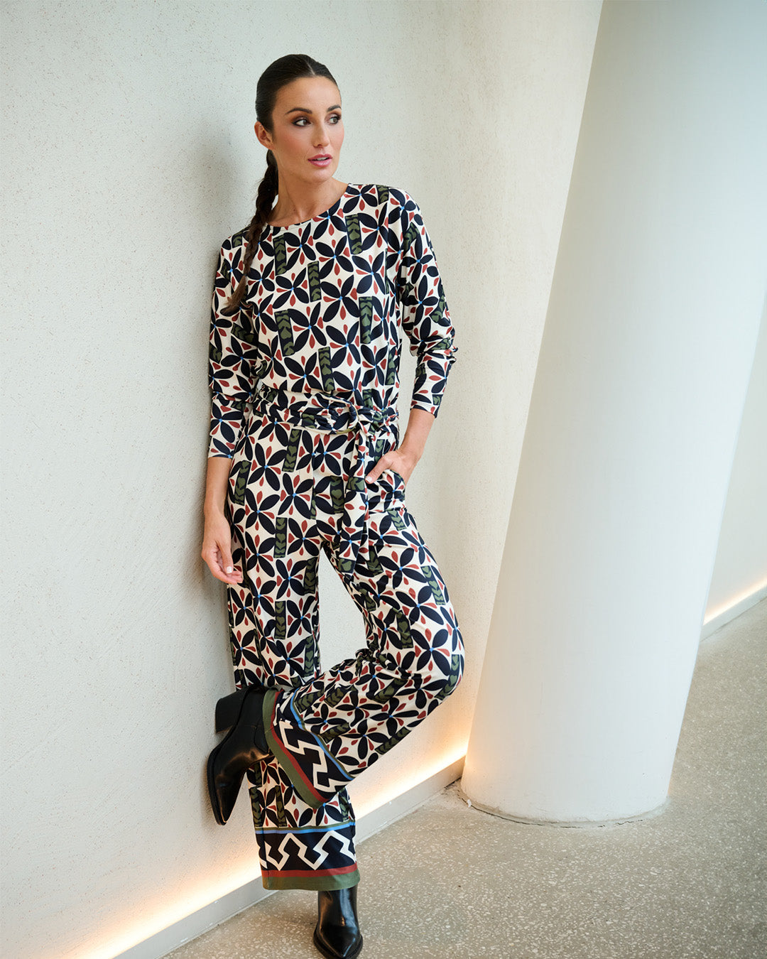 Deze K-Design jumpsuit met retroprint heeft een flatterende pasvorm. Gemaakt van een comfortabele mix van polyester en spandex biedt het een ademend en zacht gevoel tegen de huid. De strikceintuur accentueert de taille en voegt een speelse touch toe aan de stijl.