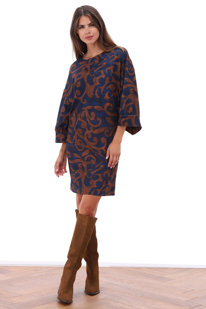 Deze prachtige K-Design mini jurk straalt elegantie uit met zijn vloeiende pasvorm en opvallende print. Gemaakt van een ademende polyestermix voelt het zacht en comfortabel aan op de huid. Perfect voor zowel casual als formele gelegenheden.
