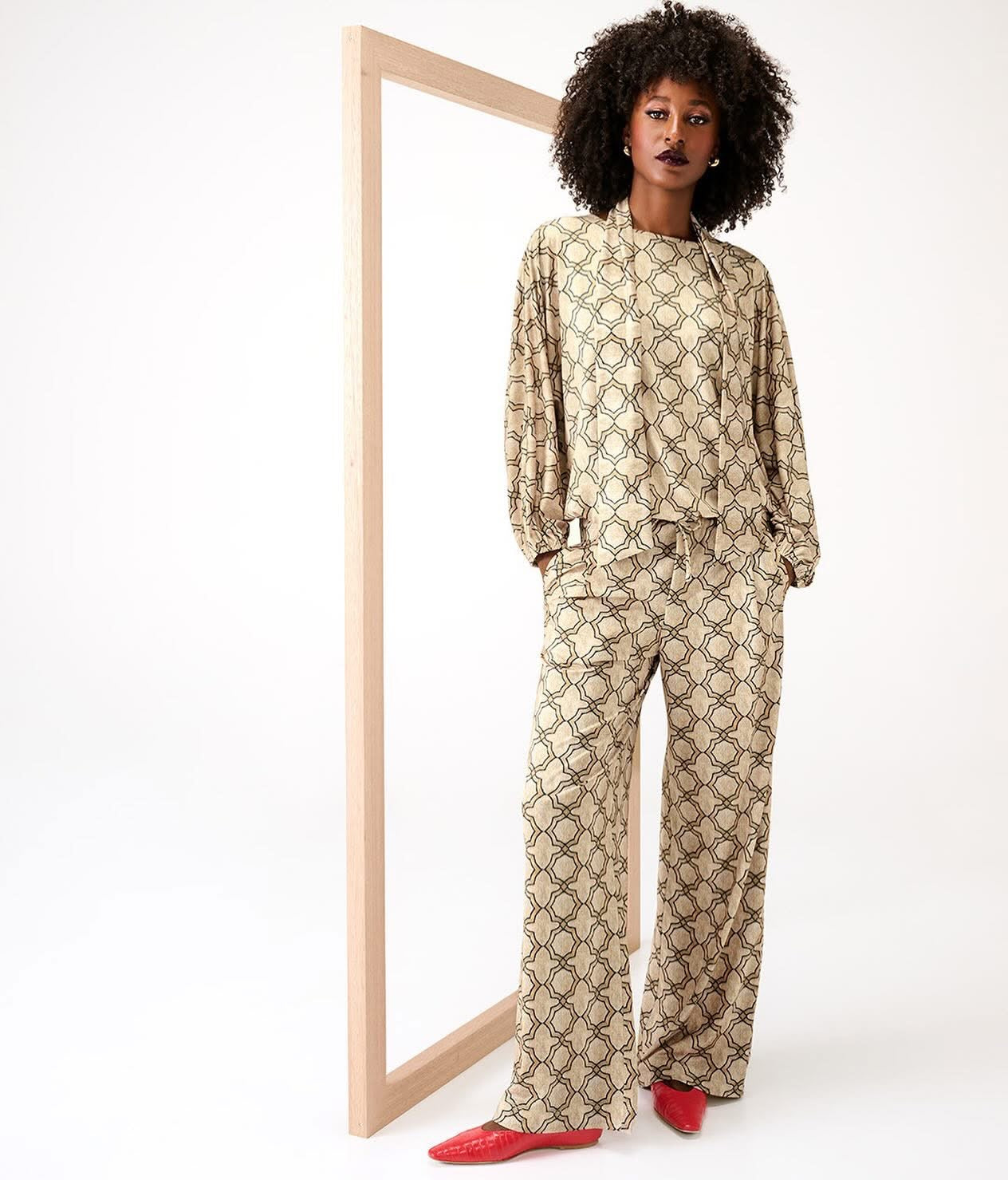 Deze K-Design top combineert een verfijnd patroon met een luchtige pasvorm waardoor het perfect is voor elke gelegenheid. Gemaakt van een zachte, ademende stof voelt het comfortabel aan op de huid. De wijde mouwen en het sjaaltje geven deze top een trendy uitstraling.