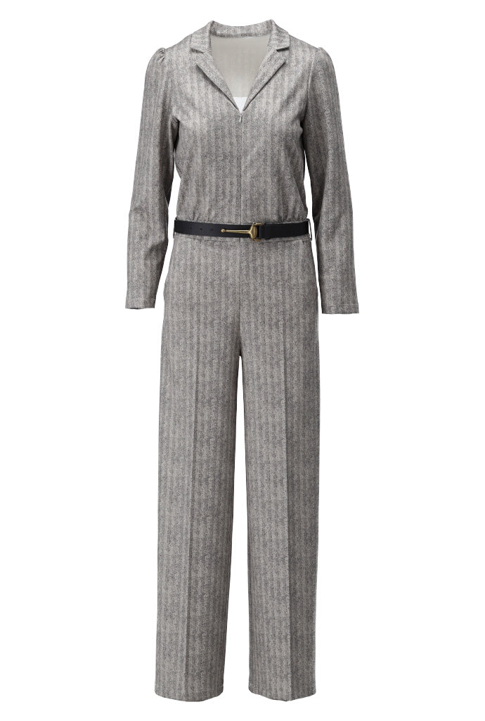 K-design - Jumpsuit met visgraat en bijpassende riem