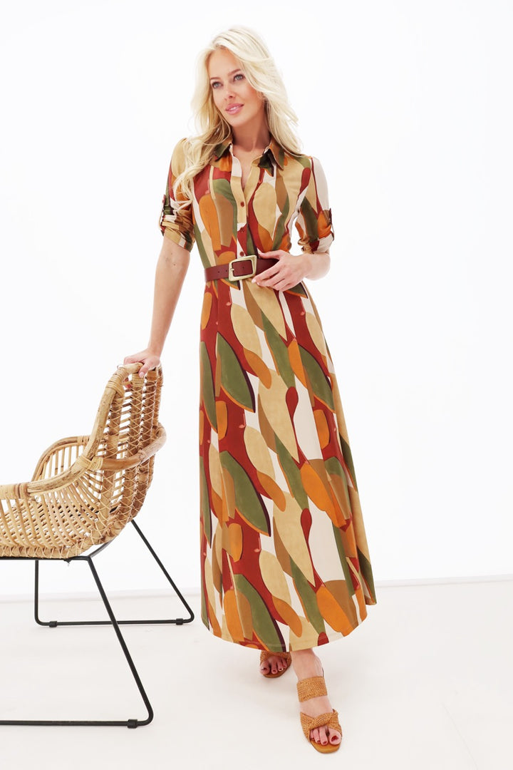 K-design - Maxi dress met print, knopen en bijpassende riem (Y332)