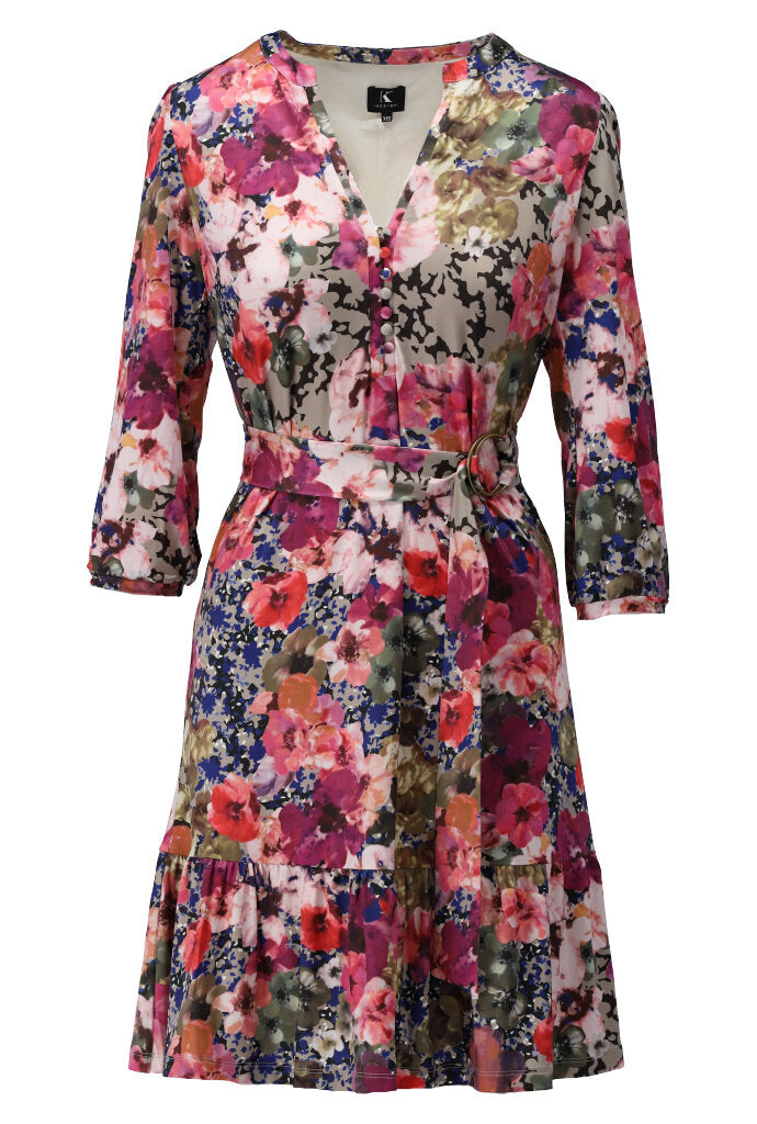 K-design - Mini dress met print, volant en stoffen riem - What Els!
