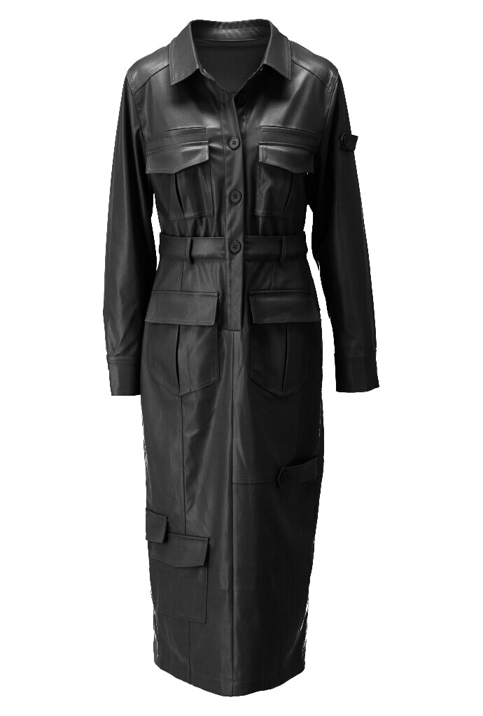 K-design - Vegan lederen cargo maxi dress