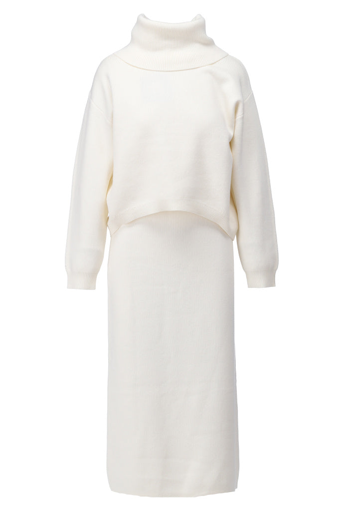 K-Design Gebreide set met jurk & pull - B872 - Ecru - Ecru