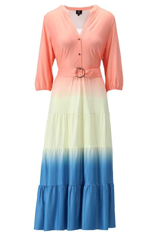 K-Design - Robe longue avec 2/3 mouwen, volants et volants en tissu (W208)