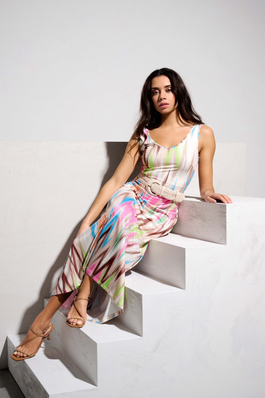K-design - Robe longue avec imprimé et motif gevlochten riem (Y208)