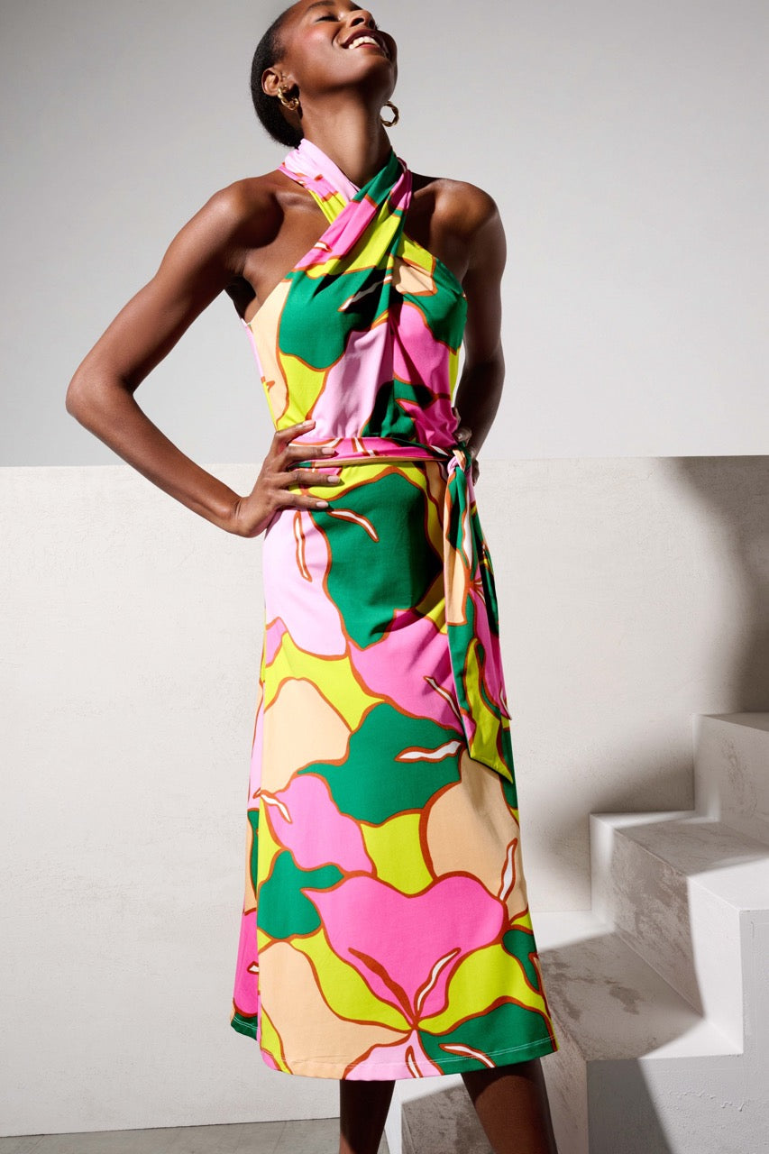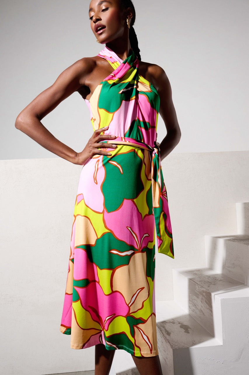 K-design - Robe midi avec imprimé, gekruiste hals en stoffen riem (Y357)