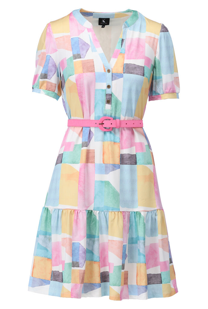 K-design - Mini robe avec imprimé, volant et bijpassende riem (Y372)