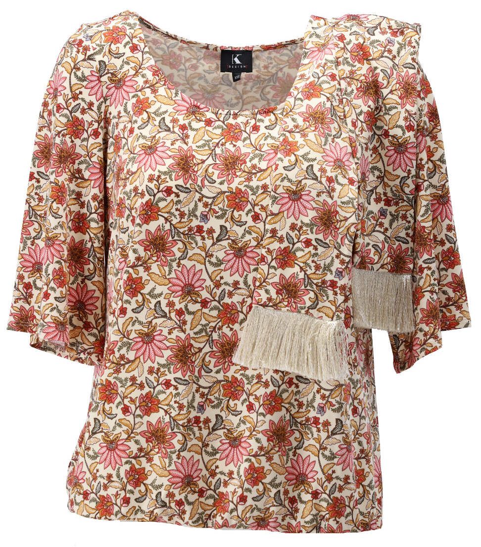K-Design - Topje met ronde hals, print en sjaaltje (U892)
