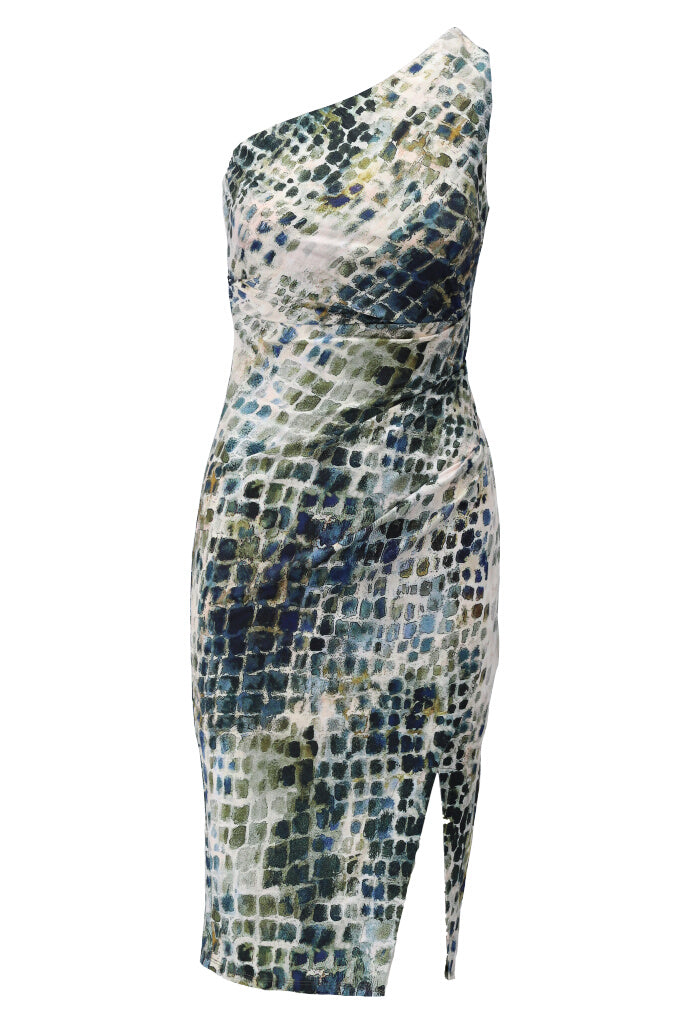 K-design - Asymetrische schouder midi dress met reptielenprint (Y101)