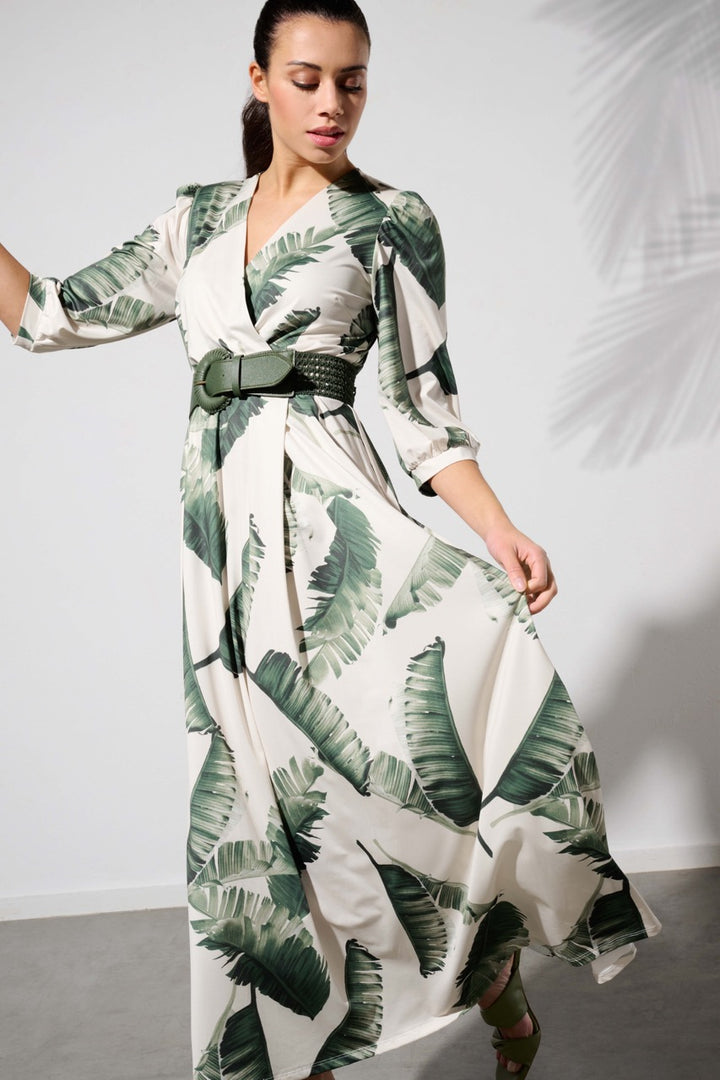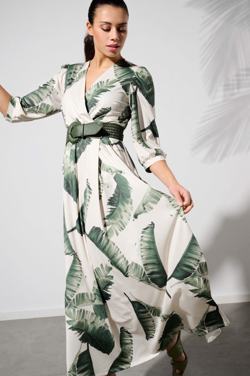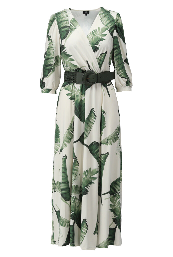 K-design - Crossover maxi dress met print, plooi en bijpassende riem (Y349)