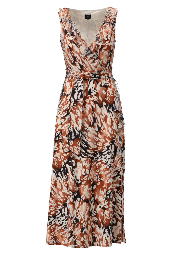 K-design - Maxi dress met print, franjes en stoffen riem (Y227)