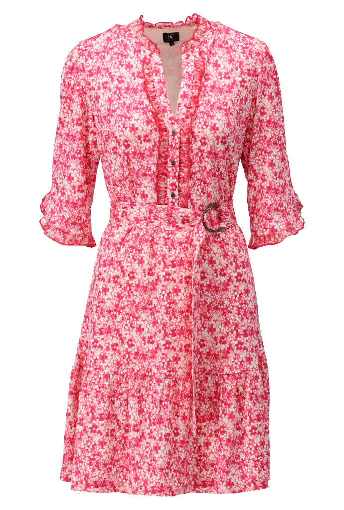 K-design - Mini dress met bloemenprint, volant en stoffen riem (Y211)
