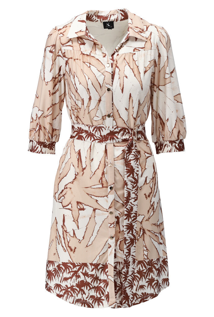 K-design - Mini dress met print, knopen en stoffen riem (Y396)