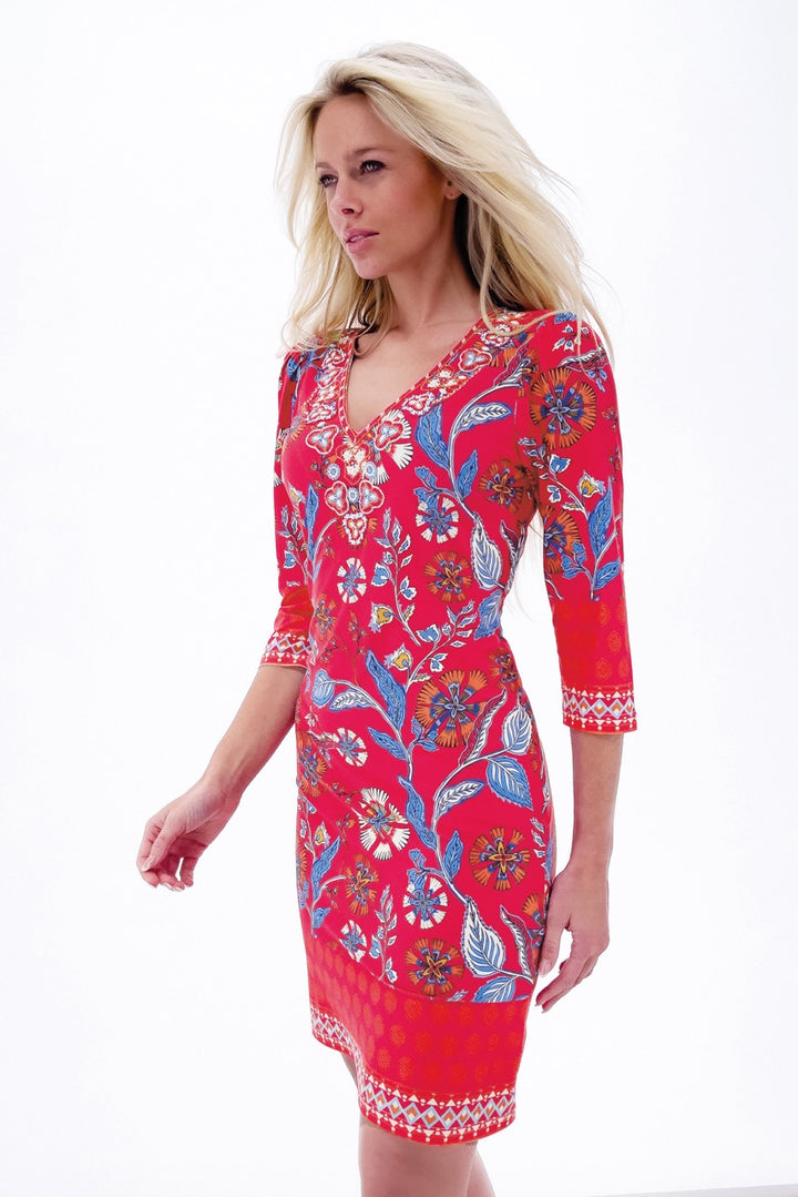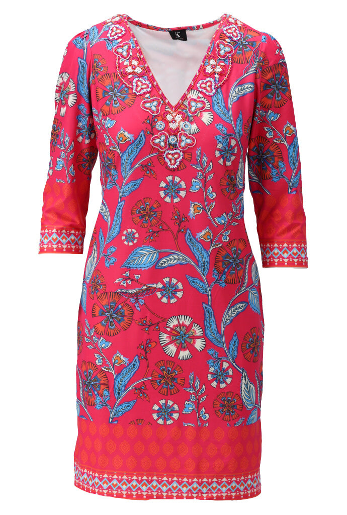 K-design - Mini dress met print, V-hals en kralen (Y256)
