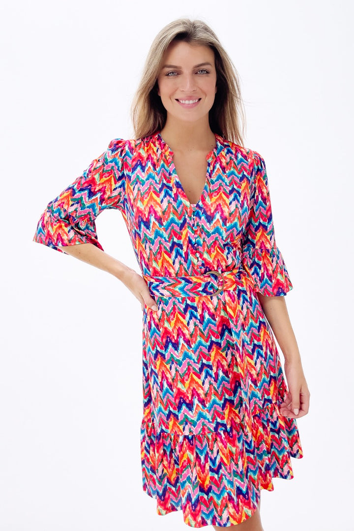 K-design - Mini dress met print, volant en stoffen riem (Y119)