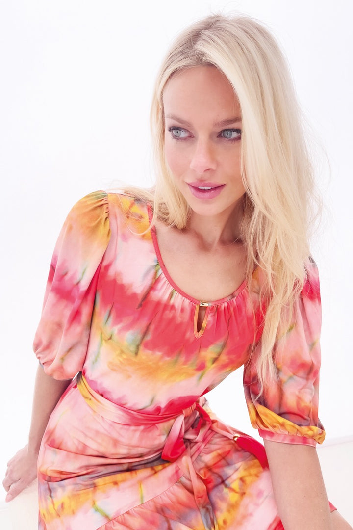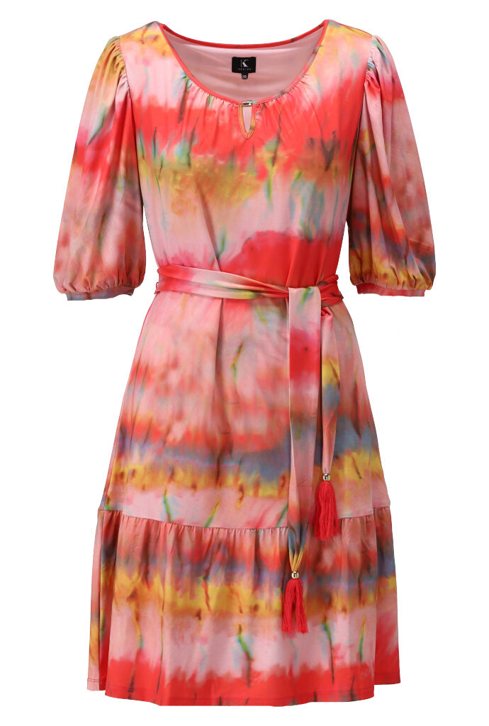 K-design - Mini dress met ronde hals, tie-dye print en stoffen riem (Y215)