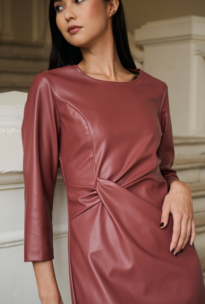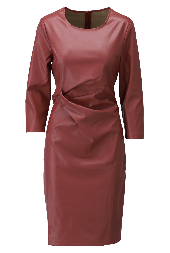 K-design - Vegan lederen mini dress met ronde hals en speciale knoop